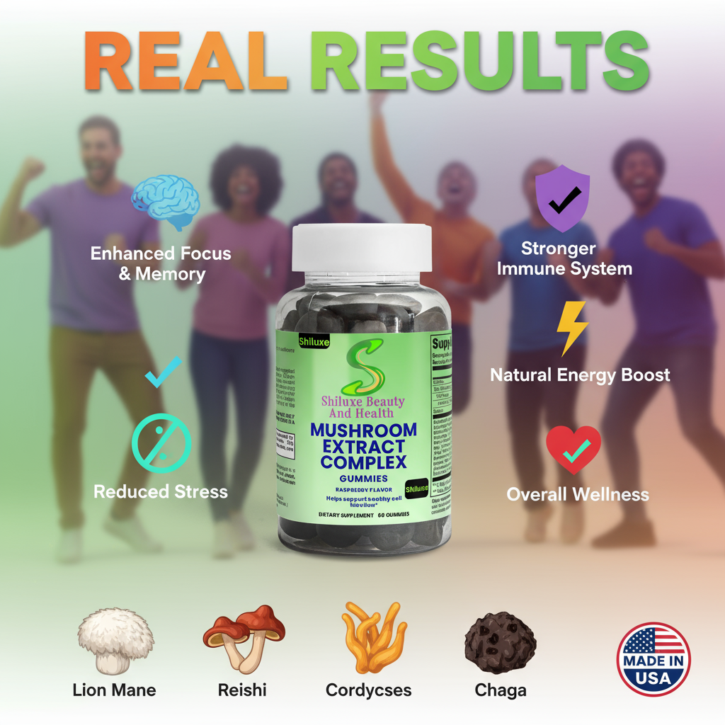 Mushroom Extract Complex Gummies, Raspberry flavor, Dietary supplement 60 Gummies, Made in USA, 136 g
